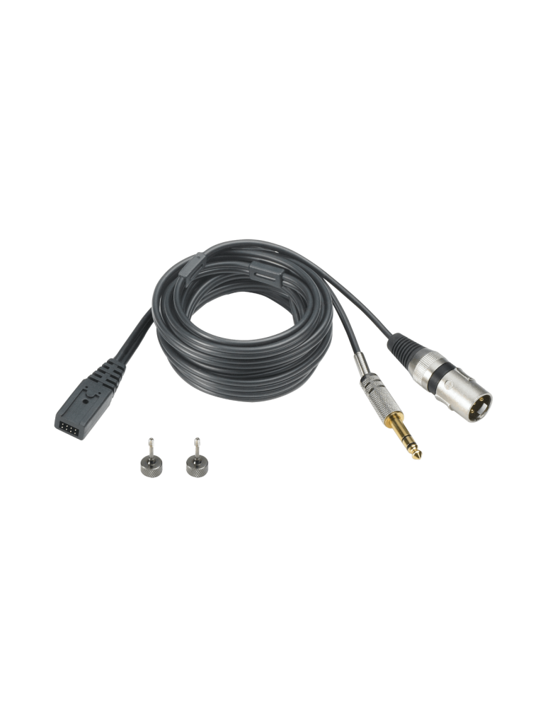 Cable 3.3 m (10.8') long with 8-pin connector at headset end; 3-pin XLRM-type connector (microphone) and 6.3 mm (1/4") phone plug (headphone) outputs