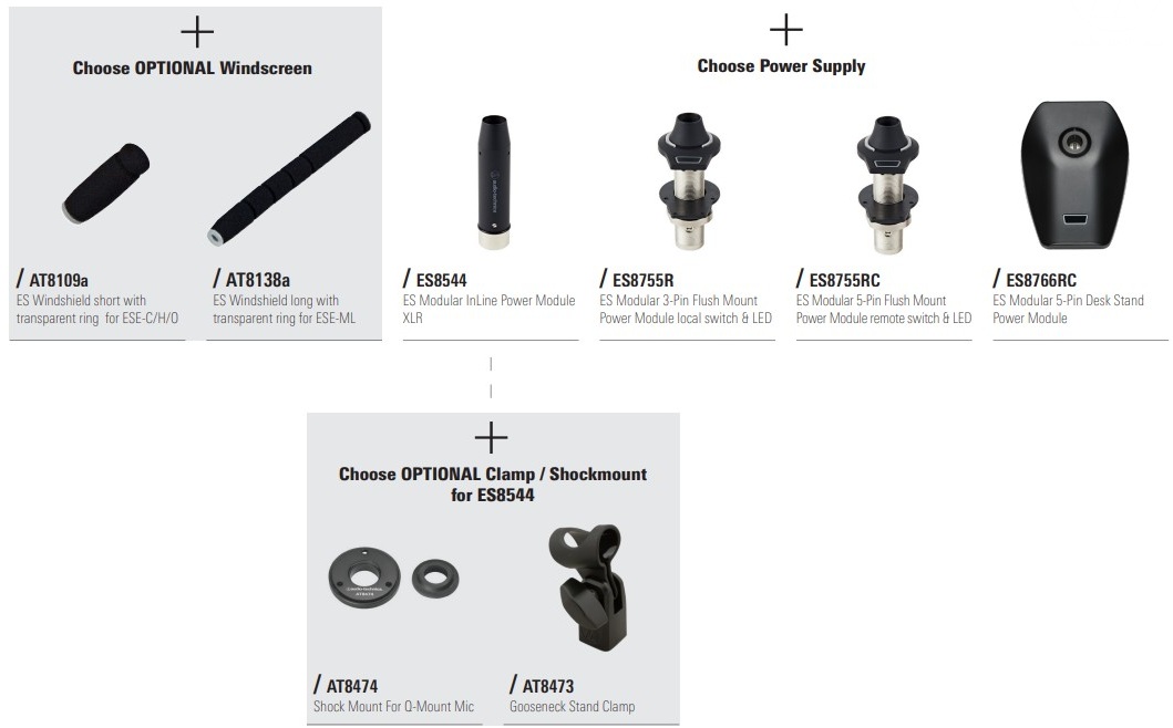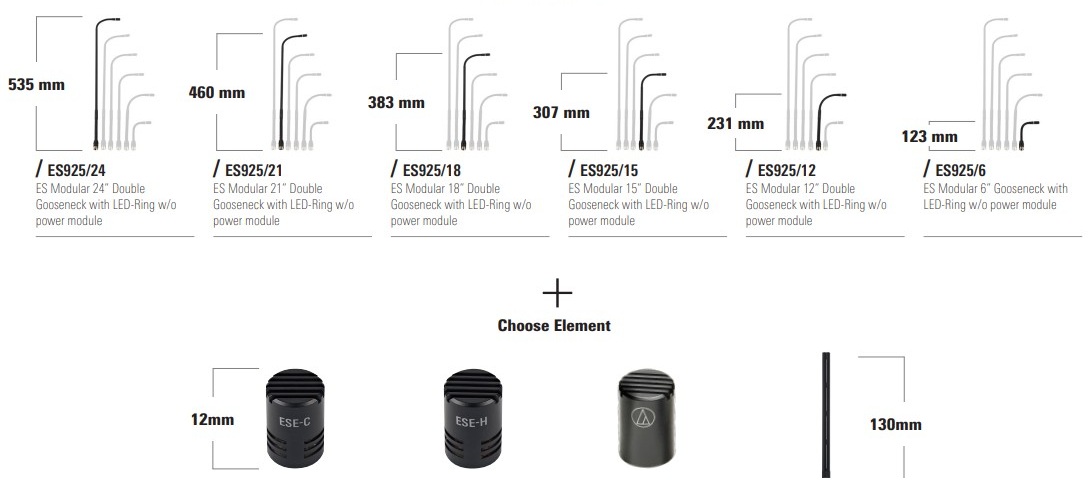 goosenecks και στοιχεία μικροφώνου. Η μονάδα τροφοδοσίας