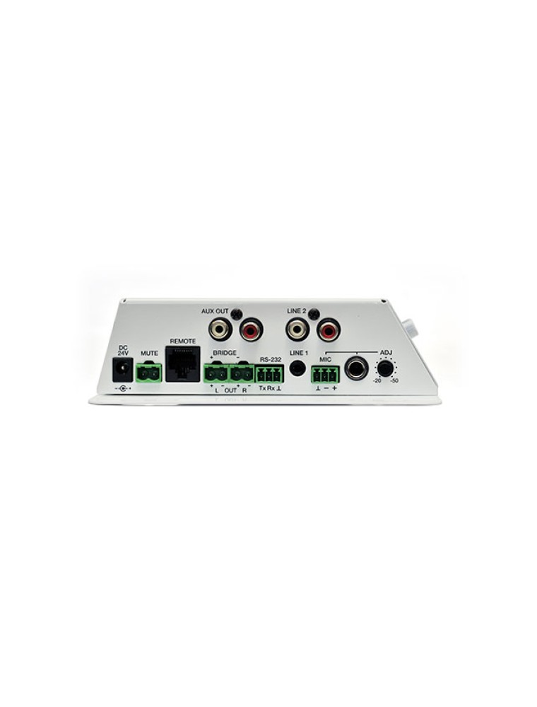 • 1 balanced MIC input, with Phantom power and high-class preamp, including noise gate and talkover function over the rest of inputs • 2 unbalanced LINE inputs