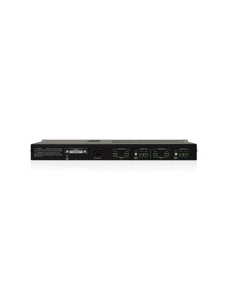• 4 analogue audio inputs x 4 powered audio outputs