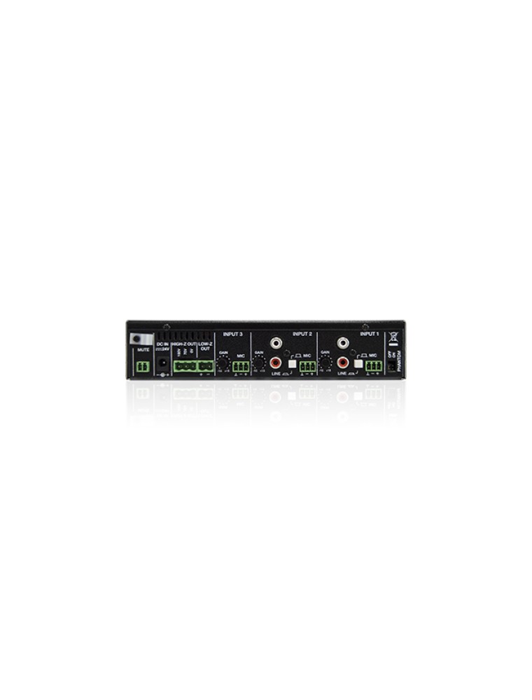 • MUTE port to remotely mute the unit from an external device, via dry contact closure