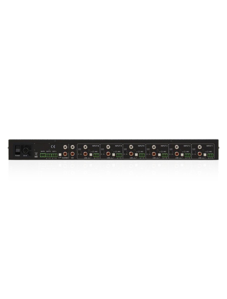 Inputs 6 x MIC /Stereo Line selectable via pushbutton + 1 x Low Line (mp3, iPod, Laptops etc.)