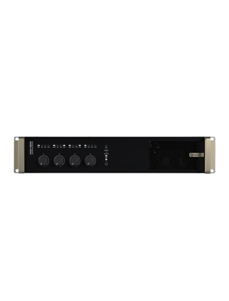Ο HADA-4B400 είναι ένας ψηφιακός ενισχυτής 4x400W που υποστηρίζει φορτία χαμηλής και υψηλής σύνθετης αντίστασης. Το εσωτερικό DSP, μέσω του λογισμικού DSP Manager, επιτρέπει την προσαρμογή του σήματος εισόδου και εξόδου μέσω παραμετρικών EQ, συμπιεστών πολλαπλών ζωνών, περιοριστών και καθυστερήσεων και κάθε διαμόρφωση μπορεί να αποθηκευτεί ως προεπιλογή. Εκτός από την επιλογή λογισμικού, τα επίπεδα εισόδου μπορούν να ελεγχθούν μέσω των ποτενσιόμετρων του μπροστινού πίνακα, μέσω τηλεχειριστηρίων που χρησιμοποιούν το GPI του πίσω πίνακα ή μέσω TCP/IP από συστήματα ελέγχου τρίτων. Όλοι οι ενισχυτές της σειράς HADA περιλαμβάνουν αποτελεσματική θερμική προστασία, προστασία DC, προστασία υπερέντασης και προστασία HF για απόλυτη αξιοπιστία σε κάθε είδους εγκατάσταση.