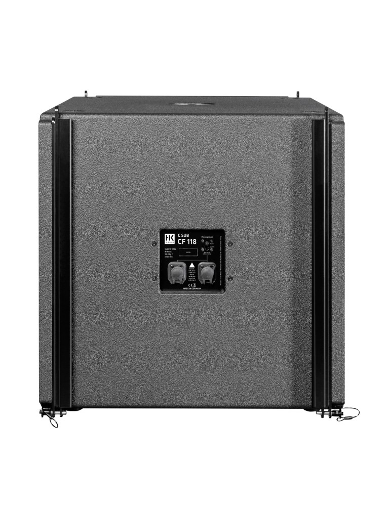 The compact, direct-radiating, high-performance 1×18″ subwoofer with COSMO’s modular dimensions of 60 cm is the flyable version of the CS 118 subwoofer. Its high efficiency and extremely high power handling capacity provide an extraordinarily large dynamic headroom down to the lowest frequencies. It is ideal for all applications where there is no room for placing bass enclosures and is also suitable for ground-stack setups with COSMO or CONTOUR X components.