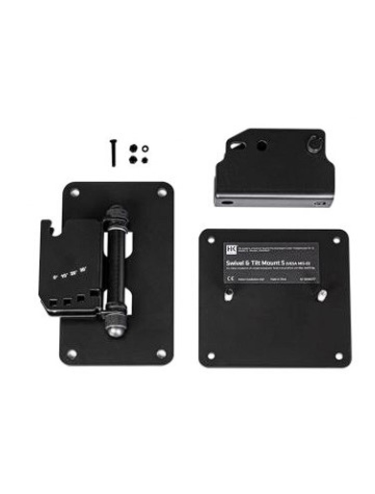The swivel and tilt wall mount S (VESA MIS-D) can be used to mount a FO 5, FO 8 or FO 10 speaker on a wall. Together with the swivel and tilt bracket, the speaker can be continuously rotated horizontally and tilted vertically in 10° increments from 0° to 30°. The swivel and tilt wall mount S is attached via the VESA hole pattern (MIS-D) on the back of the speaker.