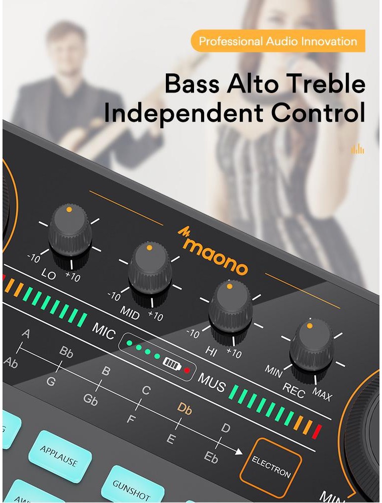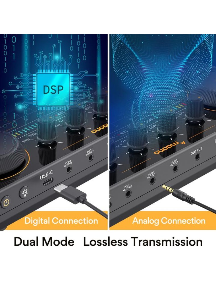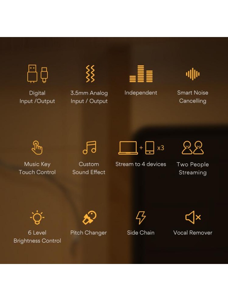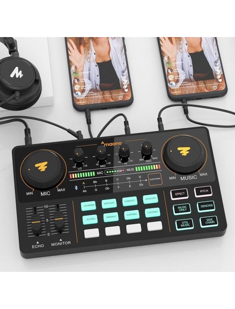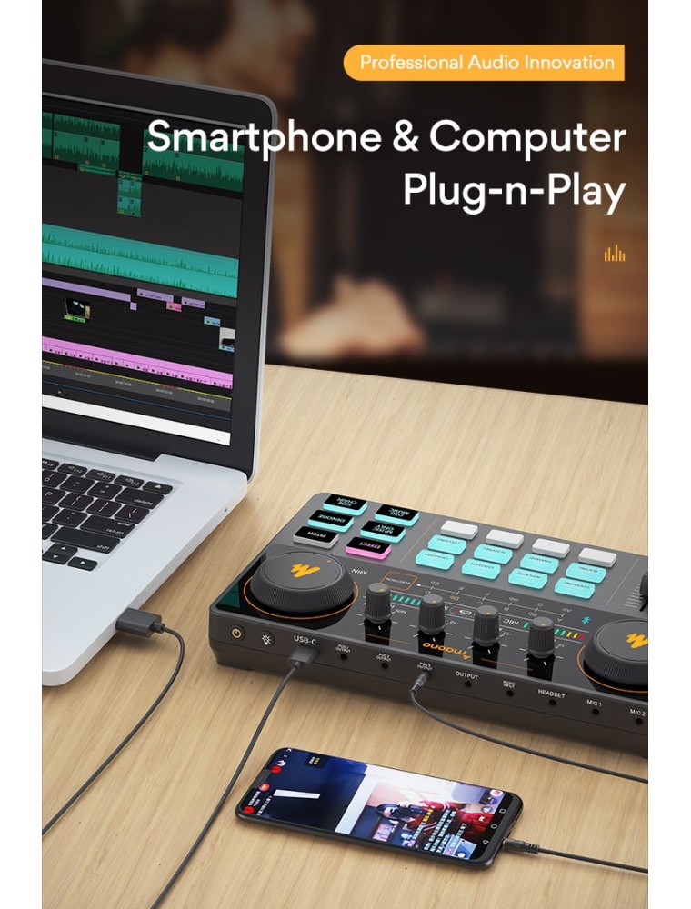 MAONOCASTER Portable Podcast Studio is exactly what you need when you want to get your podcast, radio shows, or Twitch streams off the ground easily but are not sure what gear to buy. It is so easy and intuitive to use that you can jump headfirst into podcasting within minutes, and focus on providing valued content and interacting with your audiences rather than being distracted by the complicated operations. It offers four channels of audio mixing and easy connections to microphones, smartphones, and other sources; uses advanced engineering that allows the user to control the sound levels and add live vocal and sound effects through a comprehensive set of tools to avoid laborious post-production and editing.