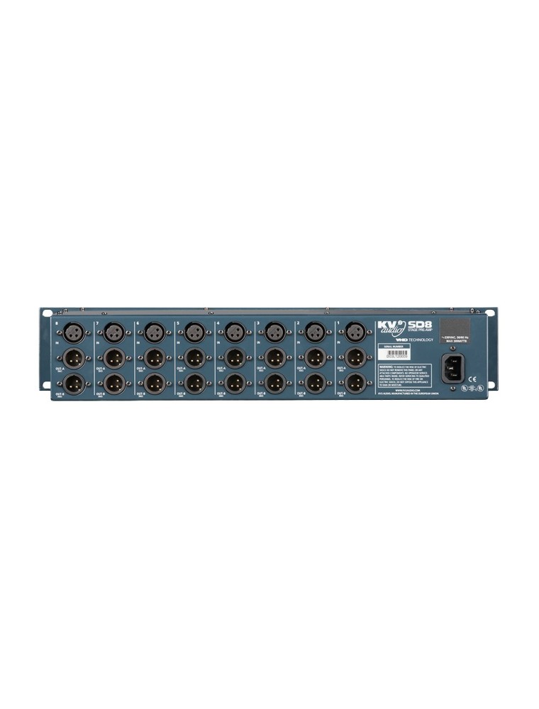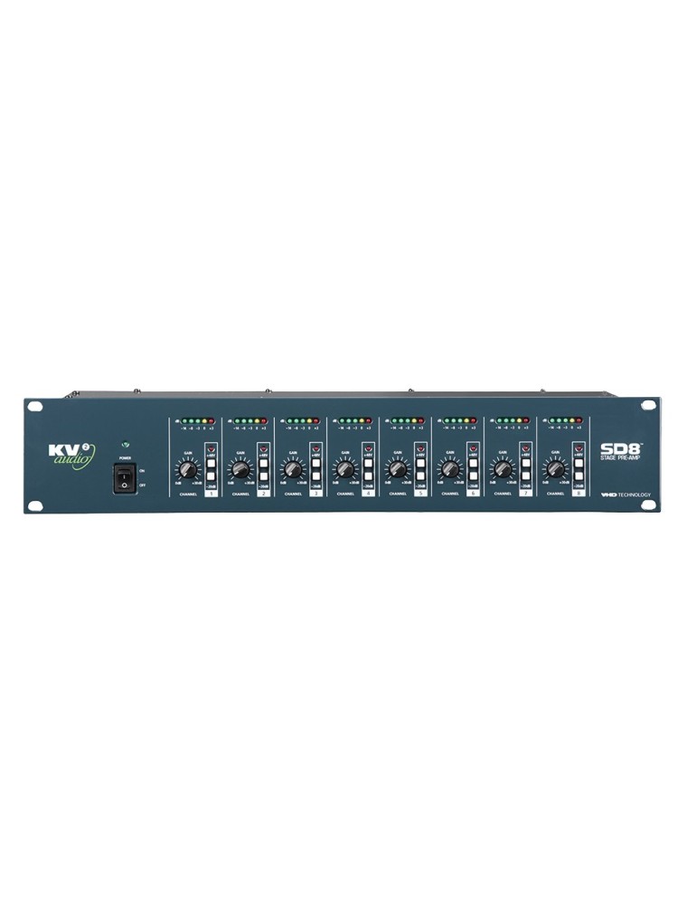 Ο VHD SD8 είναι ένας προενισχυτής οκτώ καναλιών μικροφώνου που έχει σχεδιαστεί με μεμονωμένα προγράμματα οδήγησης που διατηρούν την ακεραιότητα του σήματος ήχου σε μεγάλα μήκη καλωδίων. Καθώς τα μήκη των καλωδίων αυξάνονται, το μήκος του καλωδίου δημιουργεί ένα φορτίο υψηλής χωρητικότητας που τα περισσότερα μικρόφωνα δυσκολεύονται να οδηγήσουν. Ο SD8 διαθέτει οκτώ ανεξάρτητες εισόδους μικροφώνου με ρύθμιση απολαβής, pad -20 dB και phantom power 48V. Κάθε είσοδος έχει δύο εξόδους που επιτρέπουν τη δρομολόγηση του σήματος σε δύο ξεχωριστές θέσεις, όπως front of house και σε monitoring consoles. Μια οθόνη από 5 LED  παρέχει πληροφορίες για το επίπεδο του σήματος και ένα περιστροφικό κουμπί παρέχει έλεγχο απολαβής από 0db έως +30 dB.